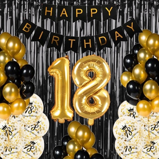 Zestaw Balonów Dekoracji Balony 18 Urodziny Kurtyna Ścianka Czarny Złoty