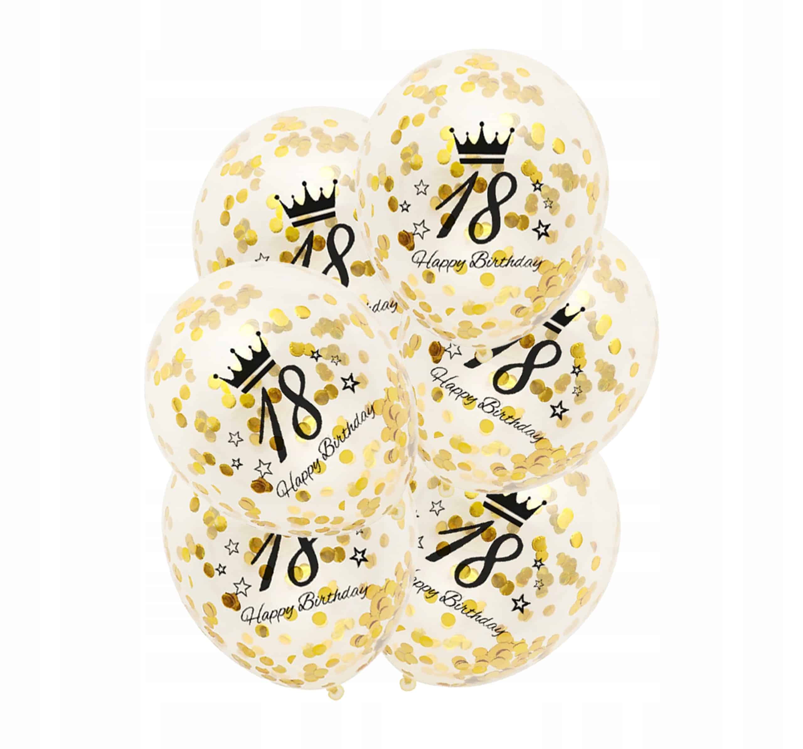 - 6 x balonów przezroczystych z nadrukiem 18 – specjalne balony na ten wyjątkowy dzień ✨