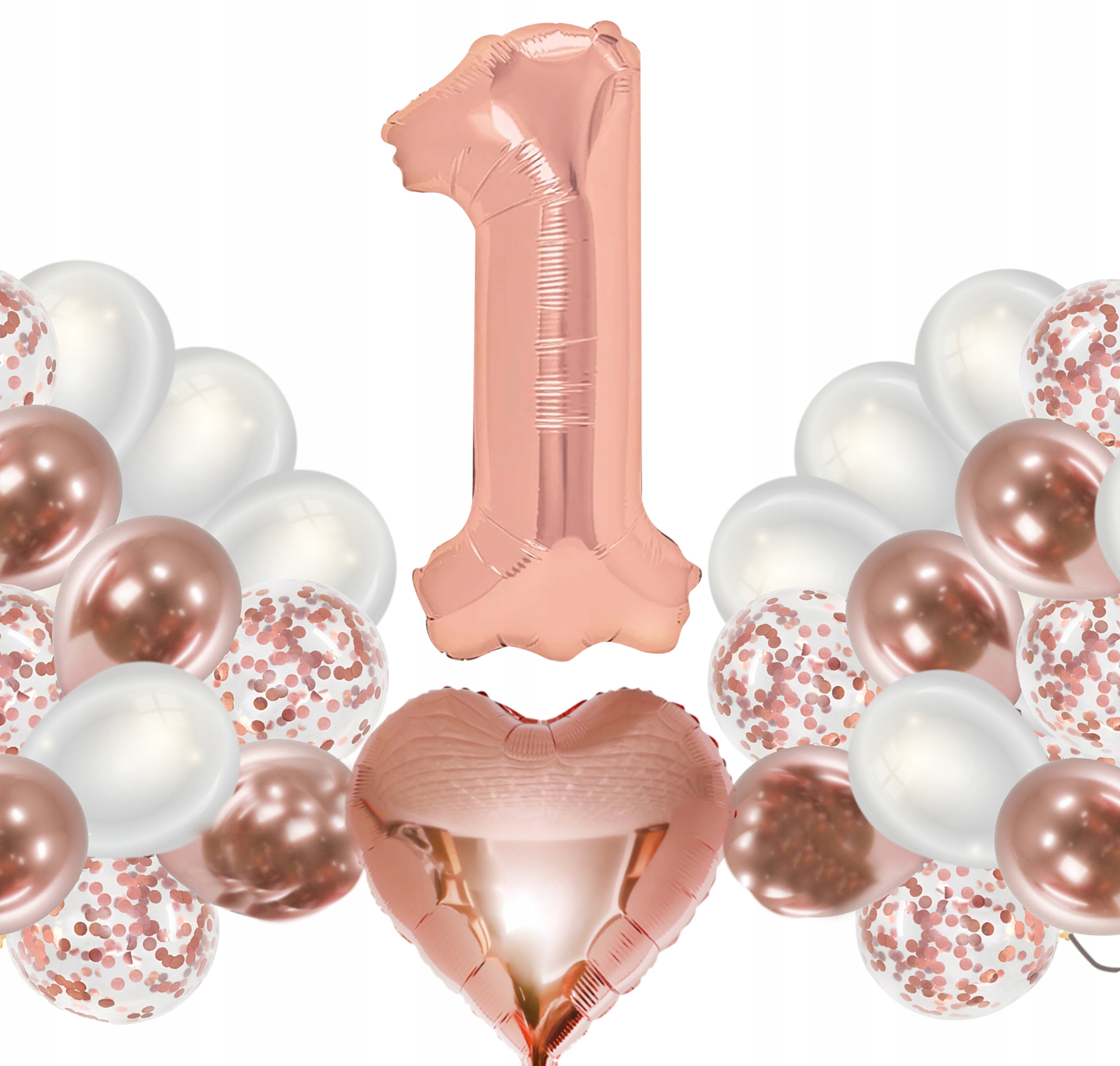 Zestaw balonów na roczek 23 szt. różowy ROSE GOLD