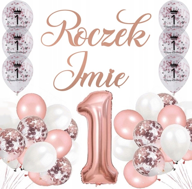 Zestaw ROCZEK 1 urodziny ROSE GOLD
