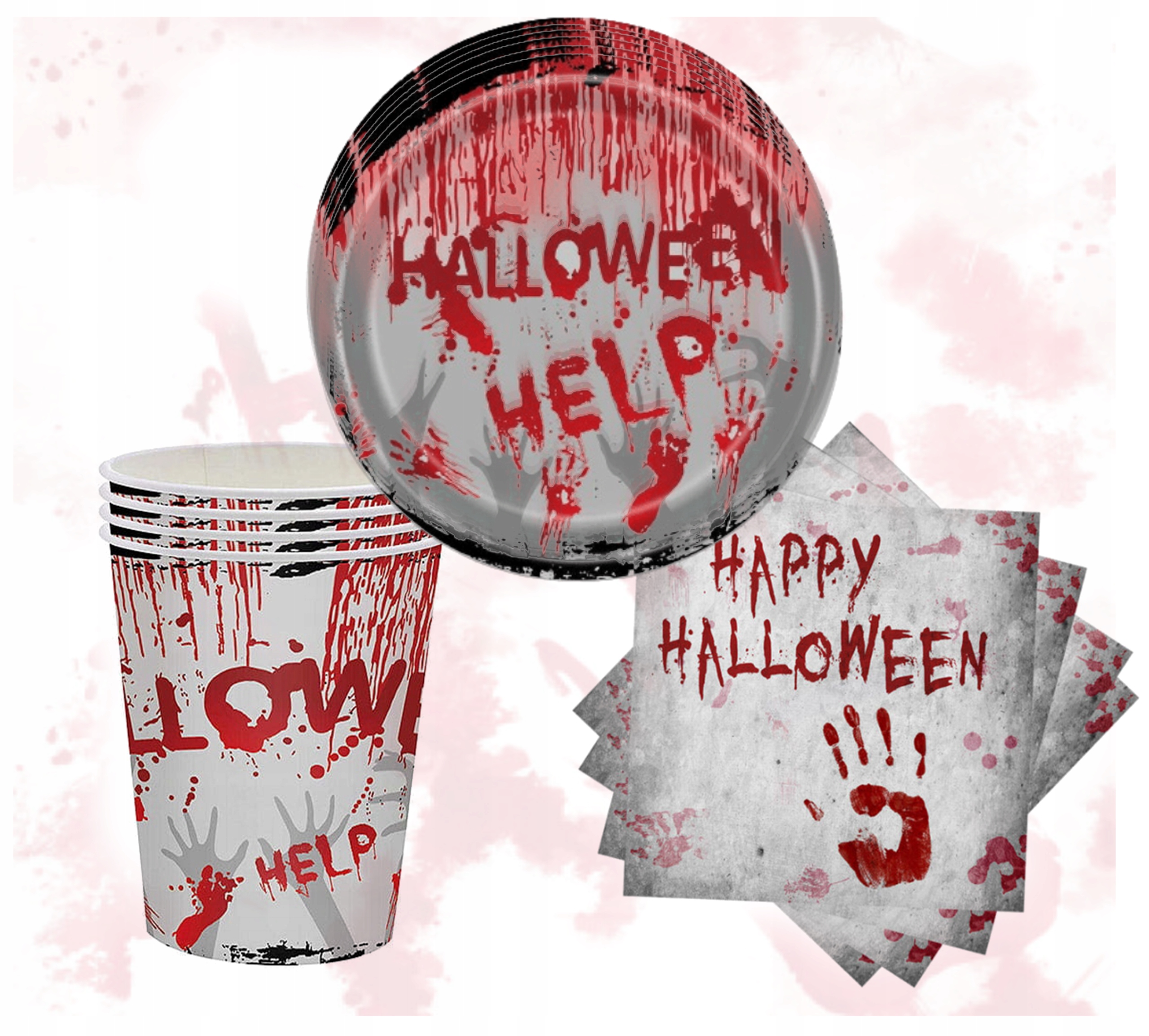 ZESTAW DEKORACJI HALLOWEEN STRASZNE DEKORACJE KUBECZKI TALERZYKI SERWETKI