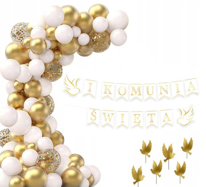 Utwórz wyjątkową oprawę dla pierwszej komunii świętej dzięki kompletnemu zestawowi dekoracyjnemu.